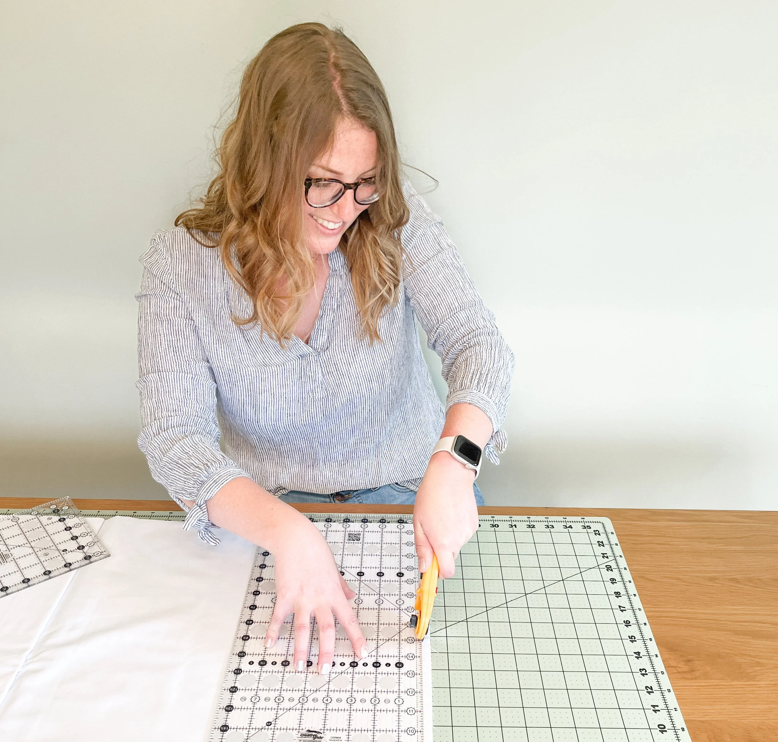 When you’re first starting out, you’ll want a cutting mat that is large enough so you can cut a full length of the fabric without shifting your fabric mid-cut. I would recommend a 36”x25” mat and I personally use the Fiskars Self Healing Eco Cutting Mat because the light color and dark lines are the least distracting for me.